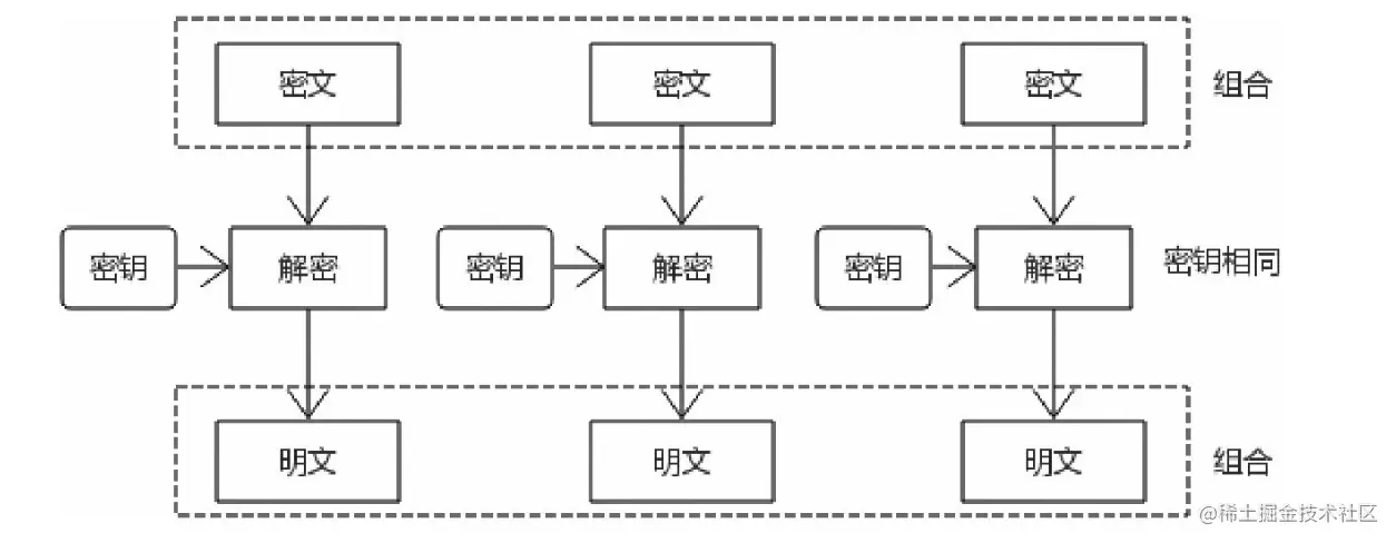 解密过程:分组加密然后组合成明文