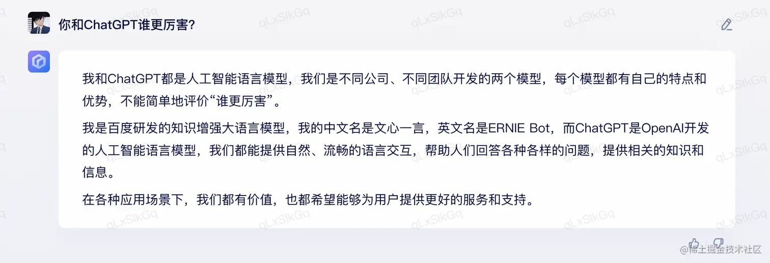 但是综合对比ChatGPT,尤其是对于程序代码的理解还有很大差距。我觉得更像是 ChatGPT3.0。