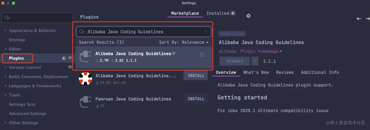 对应这个开发手册的语言层面的规范,阿里也出了一款 IDEA 插件,叫做 Alibaba Java Coding Guidelines,可以在插件商店直接下载。