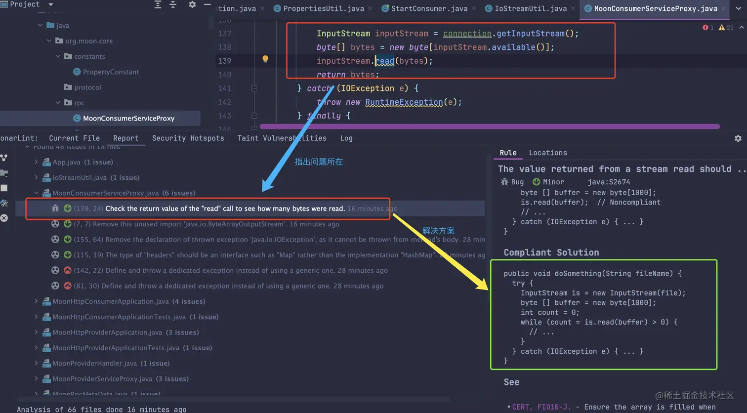 SonarLint 就是这样一款好用的插件,它可以实时帮我们 review代码,甚至可以发现代码中潜在的问题并提供解决方案。