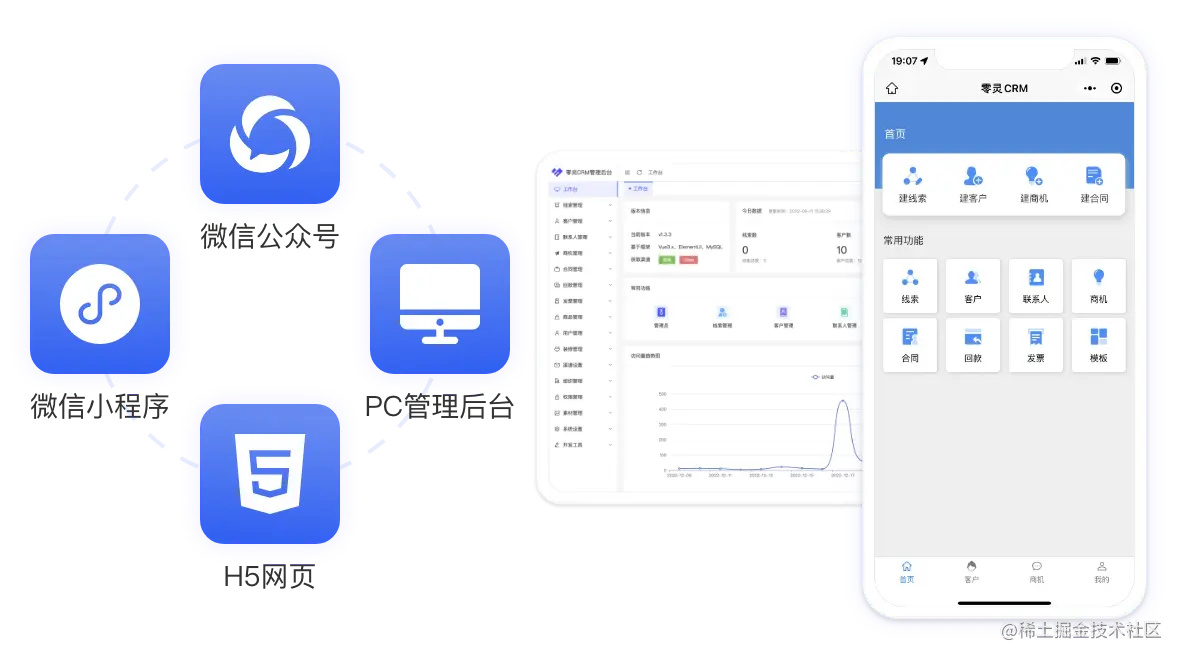 本系统支持微信小程序、微信公众号、H5网页等终端,数据互通,完美解决广大用户需求