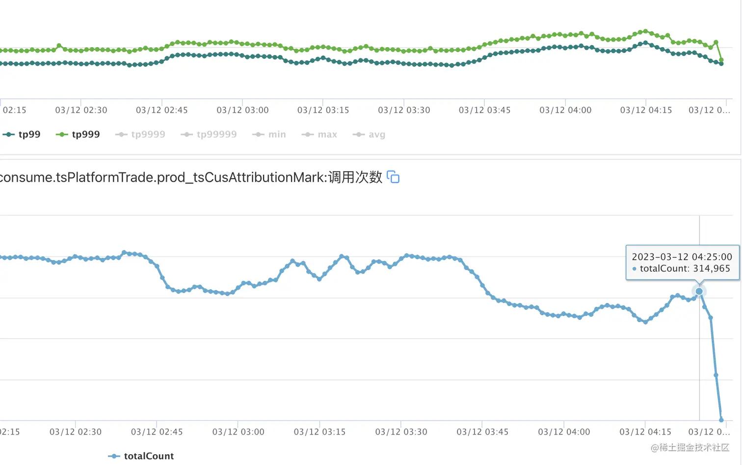 2023年2月24日早上通过监控发现拒绝营销打标没有执行完成,表现为jmq消费端tp99过高、进而降低了打标程序吞吐,通过临时扩容、下掉“问题机器****”(上帝视角:其实是程序导致的问题机器)提高吞吐,加速完成拒绝营销打标。