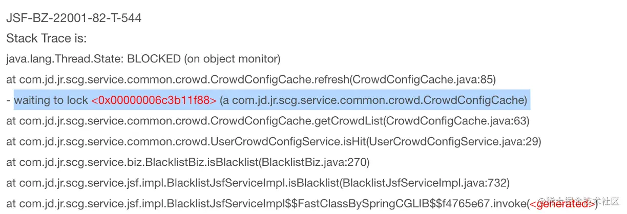 查看堆栈信息时发现存在大量waiting to lock的信息: