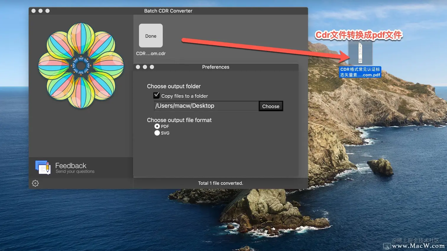cdr文件用什么打开?cdr文件怎么转换成pdf?CDRConverter for mac是Mac平台上的一款CorelDRAW(.cdr)文件转换工具,可以用于将CorelDRAW(.cdr)文件转换为.PDF(Vector Editable)和.SVG文件。
