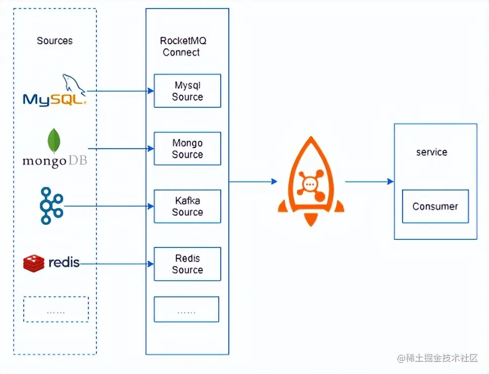 如此一来,RocketMQ 就具备数据集成能力,可以实现任意任意异构数据源之间的数据同步,同时也具备统一的集群管理、监控能力及配置化搭建数据管道搭建能力,开发者或者用户只需要专注于数据拷贝,简单配置就可以得到一个具备配置化、低代码、低延时、高可用,支持故障处理和动态扩缩容数据集成平台。