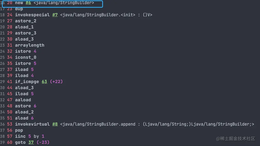 StringBuilder 对象是在循环内部被创建的,这意味着每循环一次就会创建一个 StringBuilder 对象。