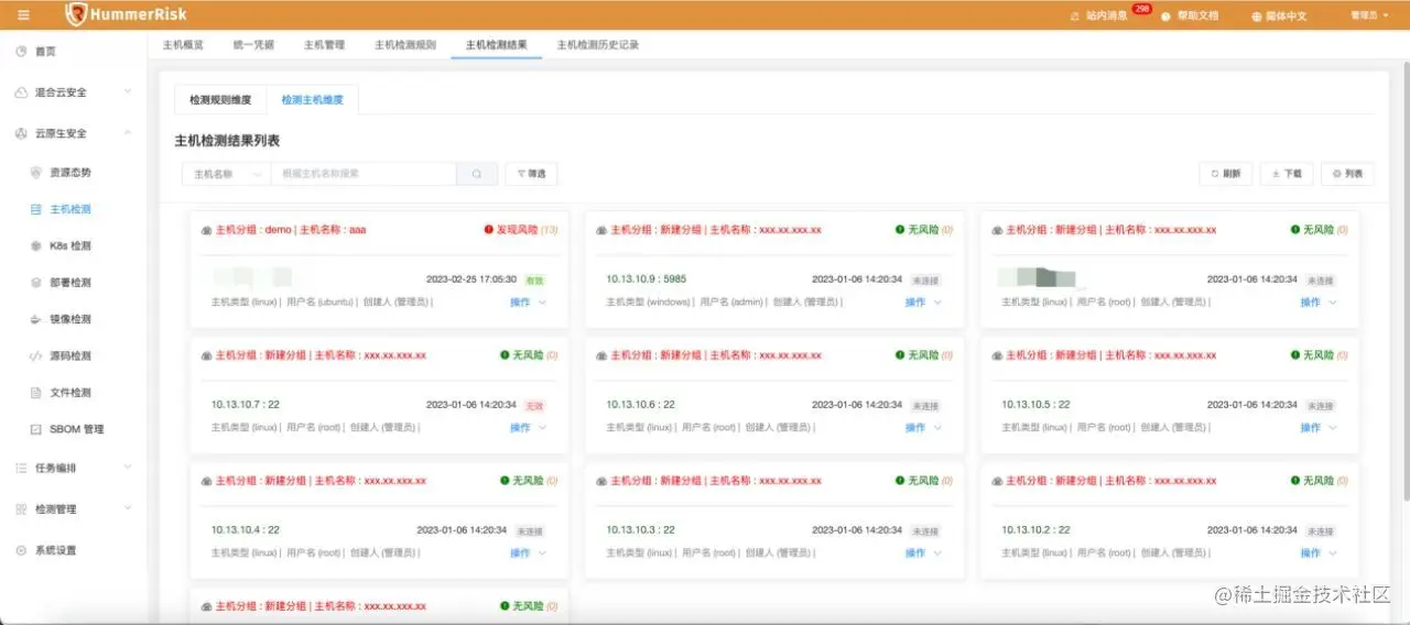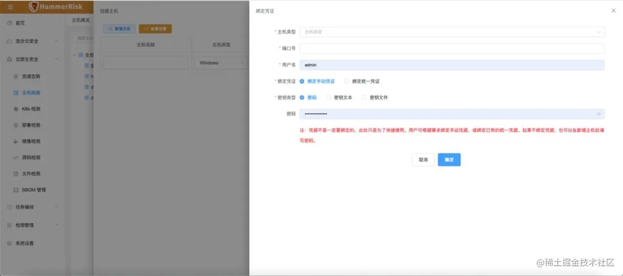 HummerRisk 是开源的云原生安全平台,以非侵入的方式解决云原生环境的安全和治理问题。核心能力包括混合云的安全治理和容器云安全检测。本文将介绍HummerRisk中的主机检测部分功能,包括如何管理主机、管理凭证,以及使用主机检测规则进行安全检测。