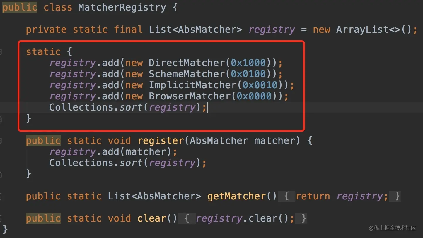 匹配优先级从高到低依次是DirectMatcher、SchemeMatcher、ImplicitMatcher和BrowserMatcher,关于原理将在后序的原理篇中进行讲解。