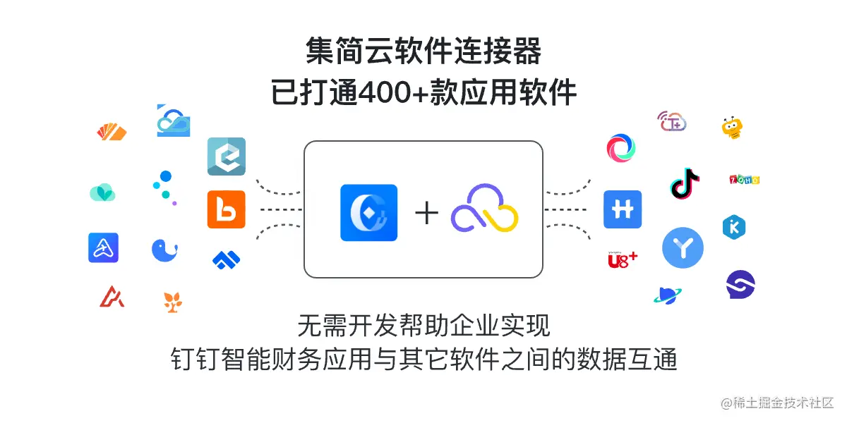 集简云是一款超级软件连接器,通过集简云您无需任何开发就可以将钉钉智能财务与您在使用的内部与外部系统打通,例如表单系统,ERP系统,邮件系统,短信系统,数据库,CRM管理系统等400多款软件系统。