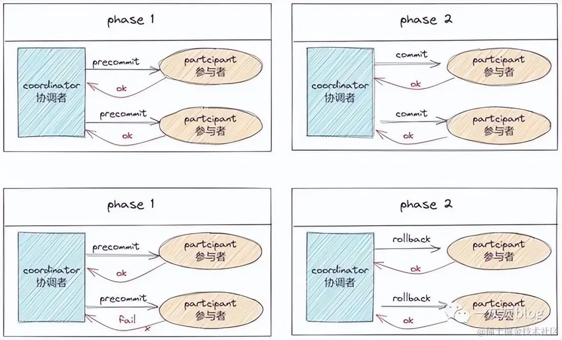 two-phase commit protocol,两阶段提交协议,主要是为了解决强一致性,中心化的强一致性协议