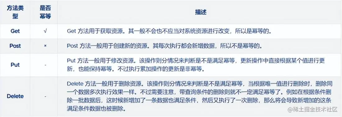 现在流行的 Restful 推荐的几种 HTTP 接口方法中,分别存在幂等行与不能保证幂等的方法。