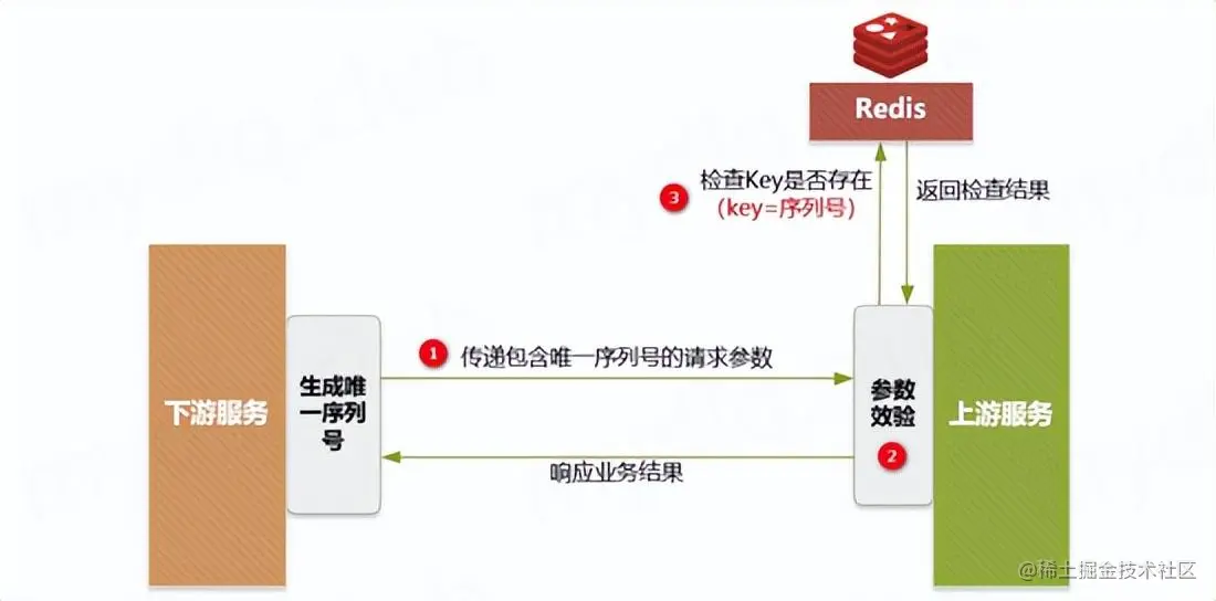 - 对于上下游这种,下游请求上游,上游服务可以使用“下游传递唯一序列号方案”更为合理。