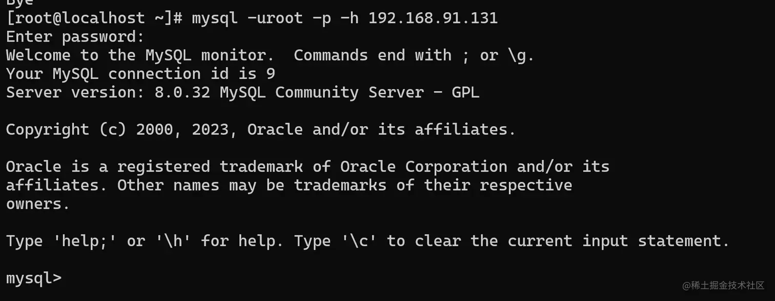mysql -uroot -p -h 192.168.91.131