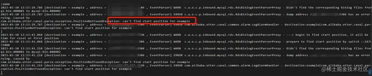 conf/example/instance.properties 实例配置文件,发现没有将canal.instance.master.address=127.0.0.1:3306 设置成自己的数据库地址。