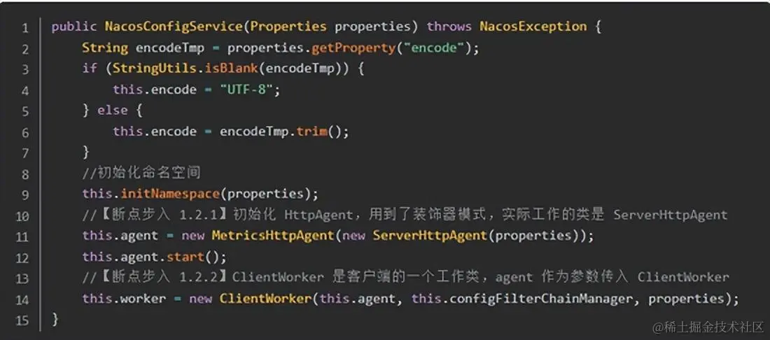 - NacosConfigService.NacosConfigService():NacosConfigService 的构造方法;