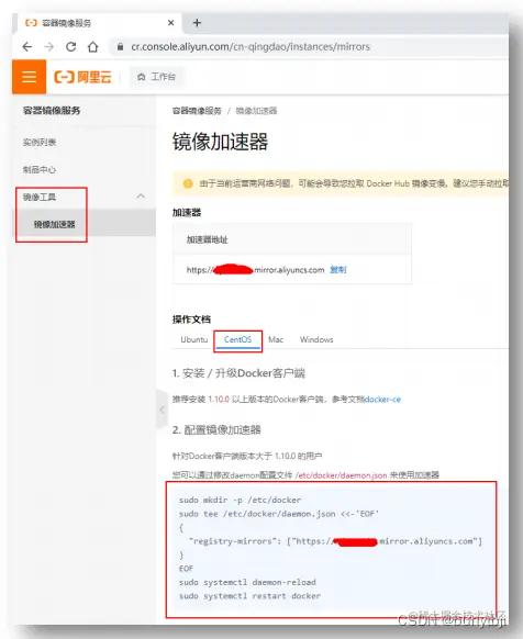 下面就需要按照给出的步骤来完成镜像加速器的配置了。