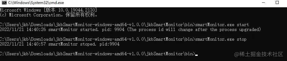 在jkbSmartMonitor文件夹中,双击运行start.bat,运行成功后显示如下图所示的内容