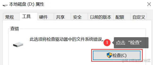 (1)在 Windows 资源管理器中,找到磁盘,右键单击该磁盘,选择 【属性】 并点击 【工具】 选项卡;