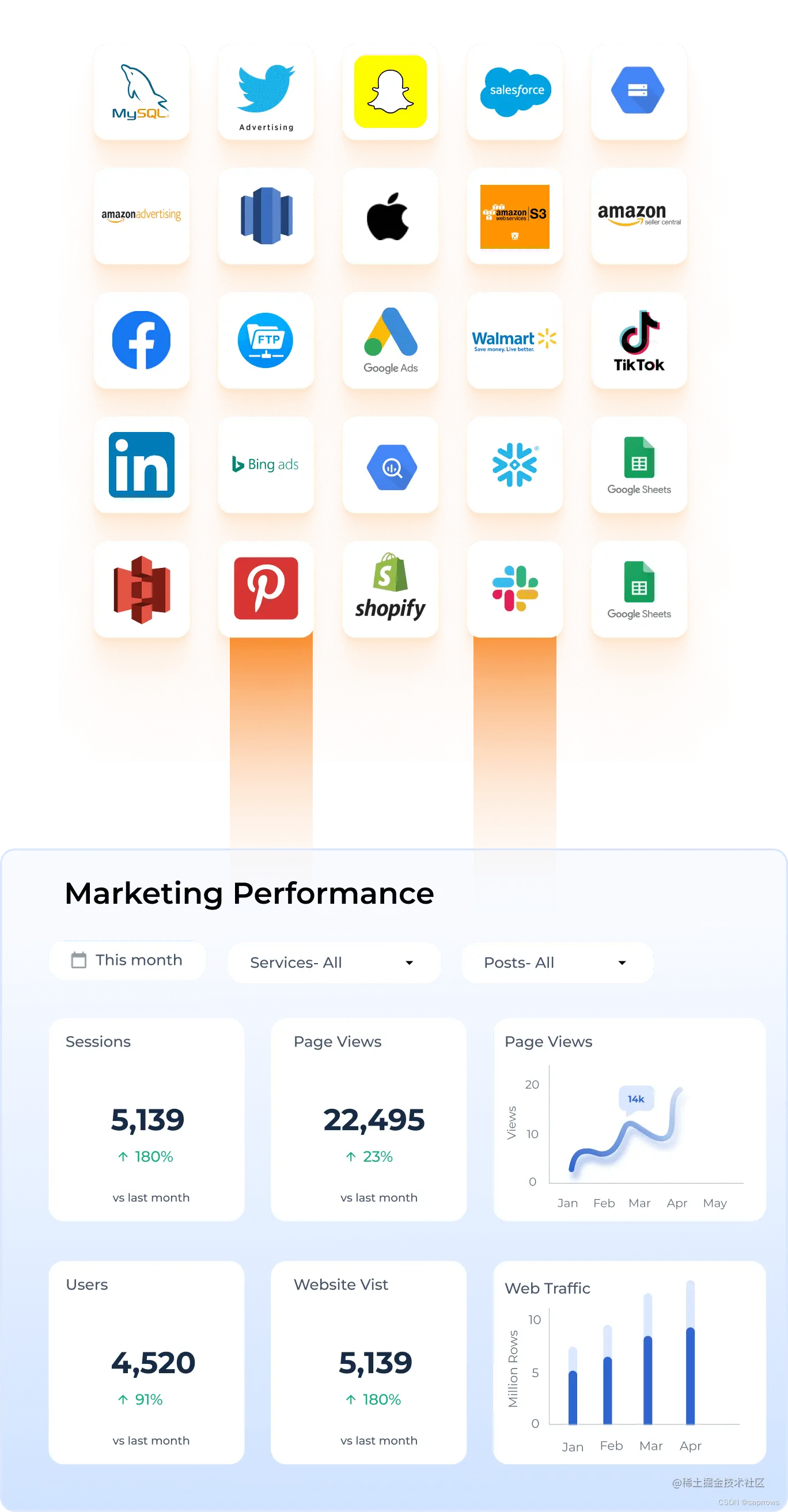 DataChannel公司推出的数字化营销和分析产品,让营销团队能够在需要时快速访问来自所有广告平台和营销自动化工具的新数据。通过与所有关键营销平台的集成,获取数据变得轻而易举。随时随地构建报告和仪表板。使用高质量数据超个性化您的广告投放,跨营销平台运行超个性化的营销活动。在一个统一平台管理您的细分和受众。业务人员在不寻求数据工程师帮助下就能进行。