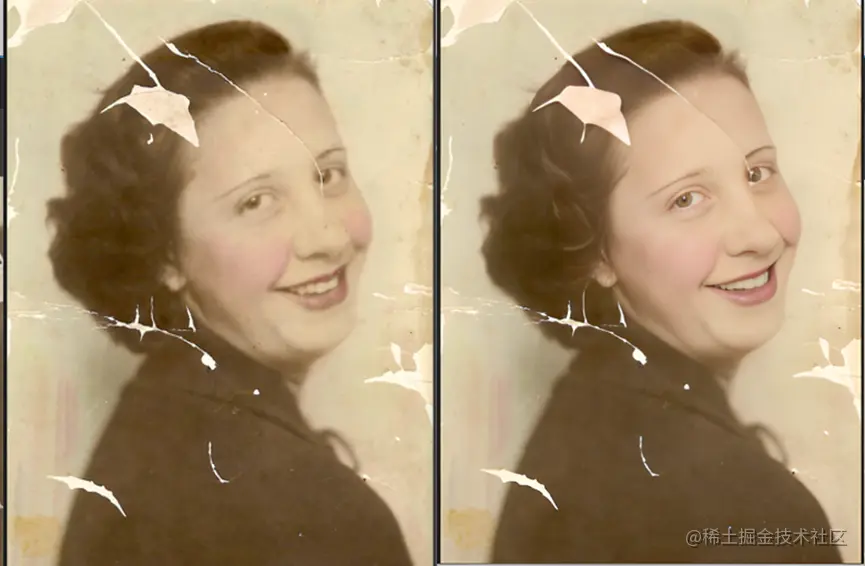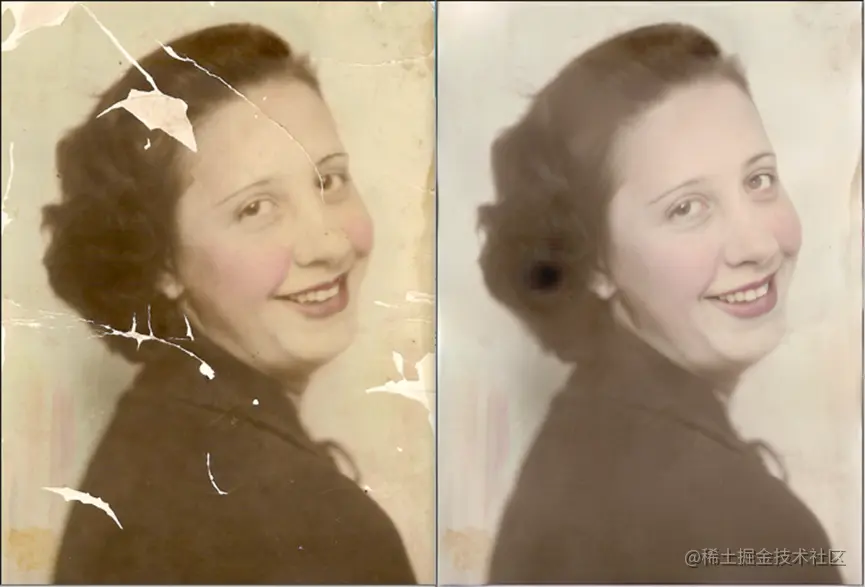 - 图片修复效果还是比较明显的,也很生动