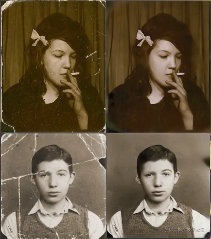 - 两个项目各有优劣,个人感觉那些破损比较严重的图片依旧需要人工用PS等工具进行修复,模型能修复的类型还是比较少的。