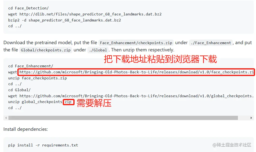 - 使用前要下载一堆模型,在Linux服务器上下载较慢可以用浏览器下载然后传上去