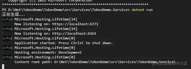 然后在通过命令行启动TokenDemo.Service.Order项目