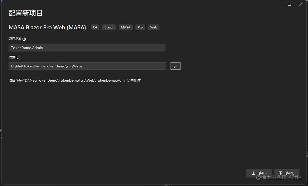 首先我们需要创建一个MasaFramework模板的项目,项目名称TokenDemo,项目类型如图所示
