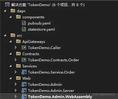 创建完成以后的目录,然后在TokenDemo.Admin中添加项目引用TokenDemo.Caller