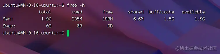 开始之前我们先看下之前的内存差不多是2G的小鸡,执行free -h可以查看,我们的目标是手动升4G