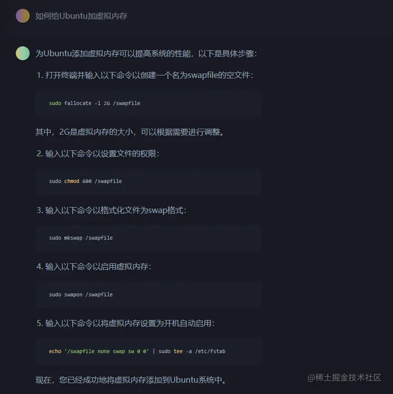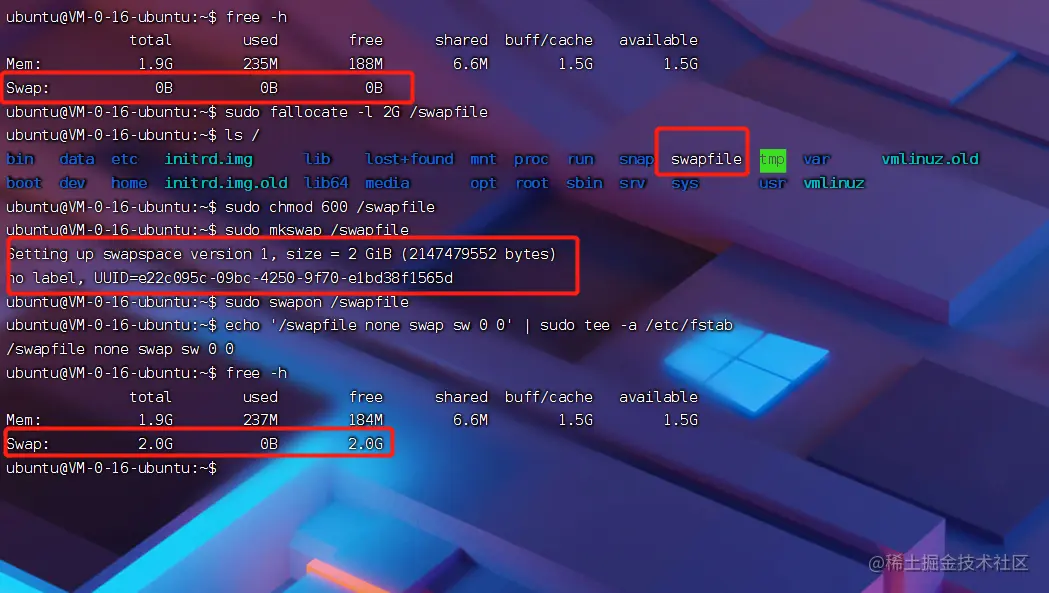 现在,您已经成功地将虚拟内存添加到Ubuntu系统中。