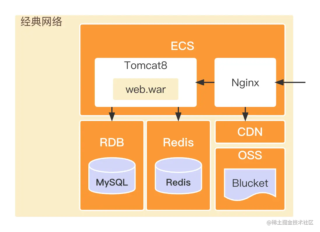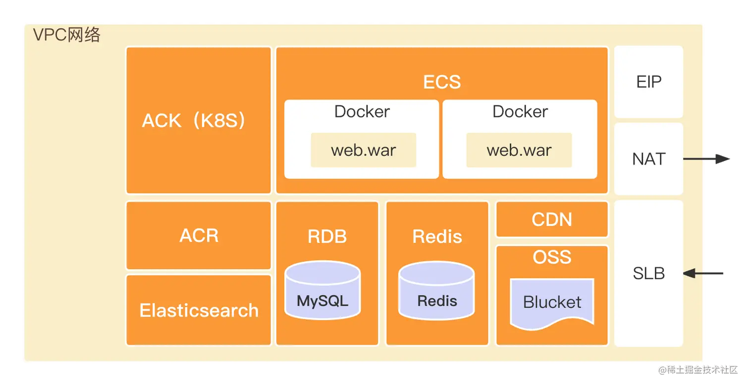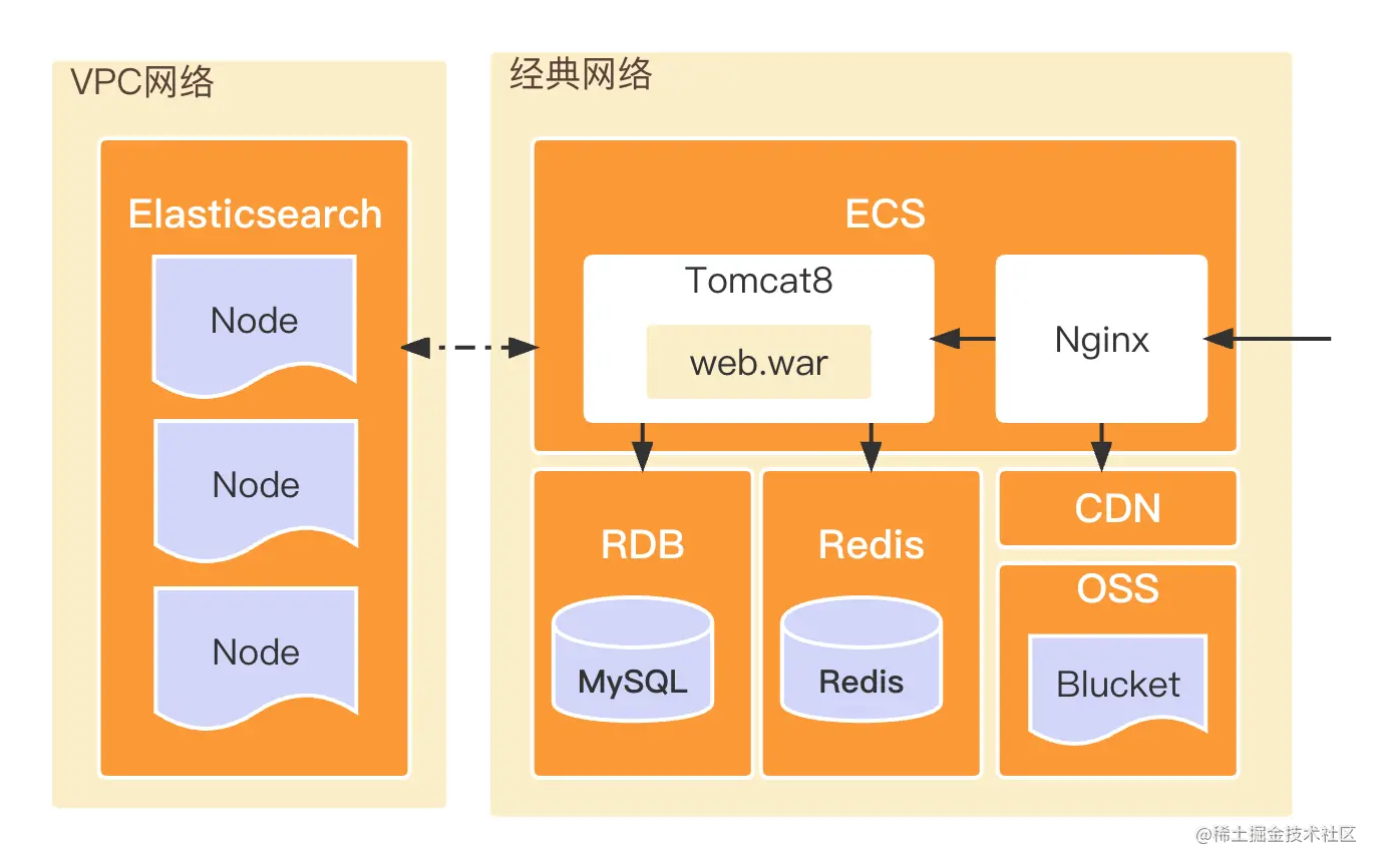 于2019年,引入 Elasticsearch 实现博文的搜索,不过由于 ECS、RBD 等都是部署在阿里云的经典网络上,而 Elasticsearch 必须部署在专有网络上,所以这在网络部署上,又使用了阿里云的 ClassicLink 解决 VPC 网络问题。