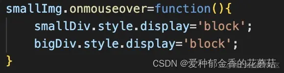 鼠标下面的小盒子和右手显示放大图片的盒子,在设置display时,属性值都是none,在未触发之前,都隐藏