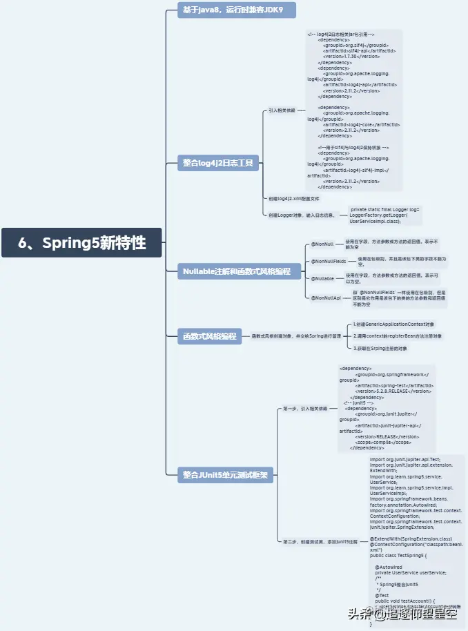 这份Spring5的架构脑图我总共是将其整个知识分为以下这6个部分(xmind文件不可上传,截图展示):