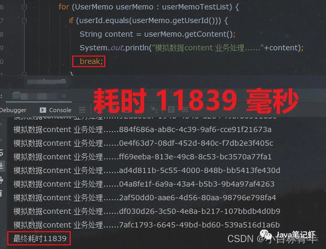 这其实就是时间复杂度,for循环嵌套for循环,就好比 循环每一个 user ,拿出 userId 需要在里面的循环从 userMemo list集合里面 按顺序去开盲盒匹配,拿出第一个,看看userId ,拿出第二个,看看userId ,一直找匹配的。