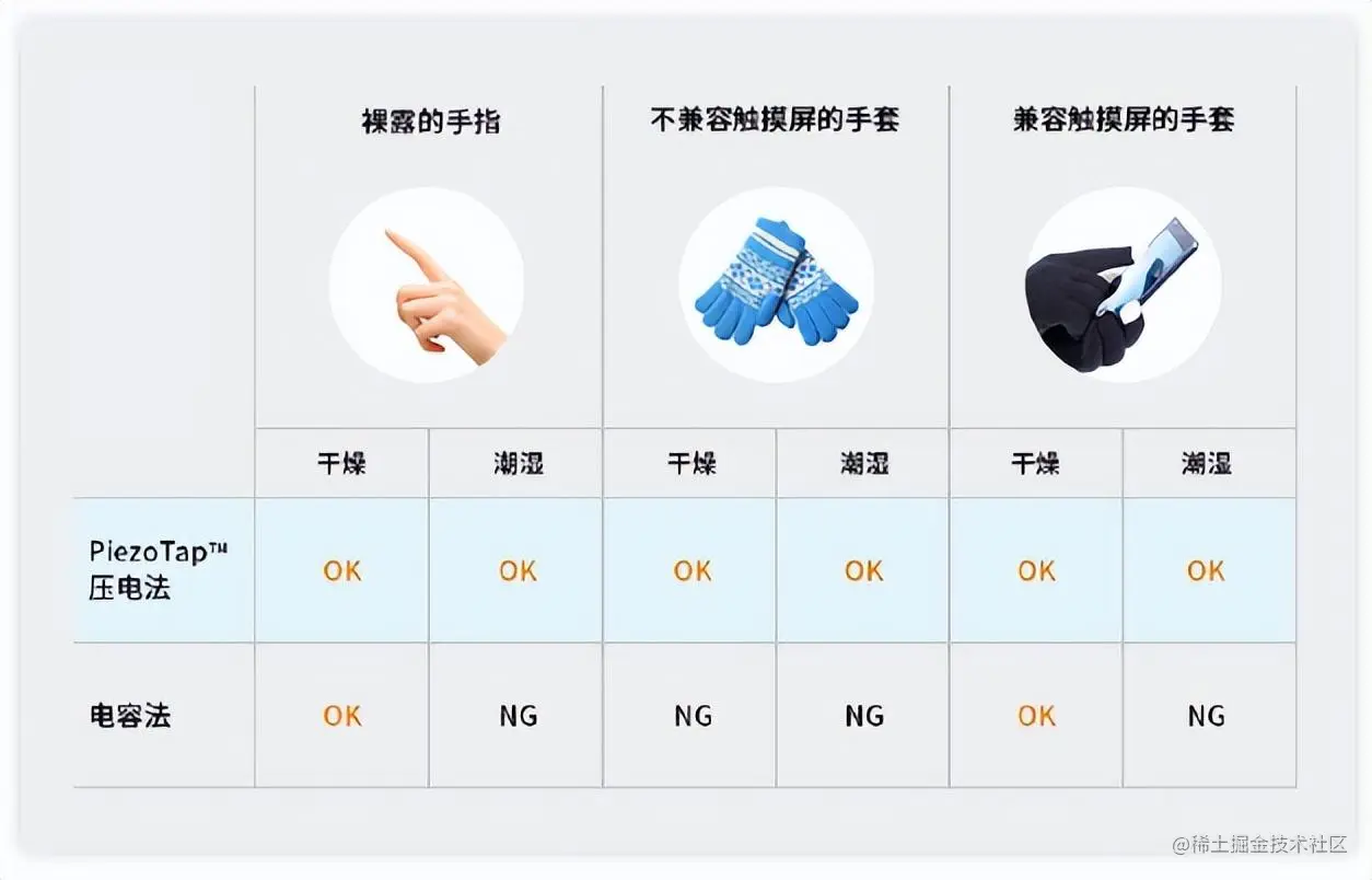 然而,电容式触摸开关存在着一个明显的缺点:易受水和汗水的影响,并且如果佩戴手套的话,需要使用专用的导电手套。若使用普通手套,手指和感应区域之间的电容变化会变得难以检测,导致无法操控开关。此外,水或汗水还可能导致反应不稳定。而由于紧凑型触控开关可应用于可穿戴设备、户外产品以及可能会接触水的产品,因此亟需解决这类应用的问题。