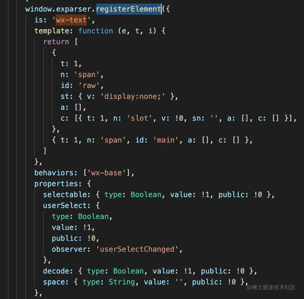 然后通过 window.exparser.registerElemtent 方法将这些 tag 转换成真实 DOM: