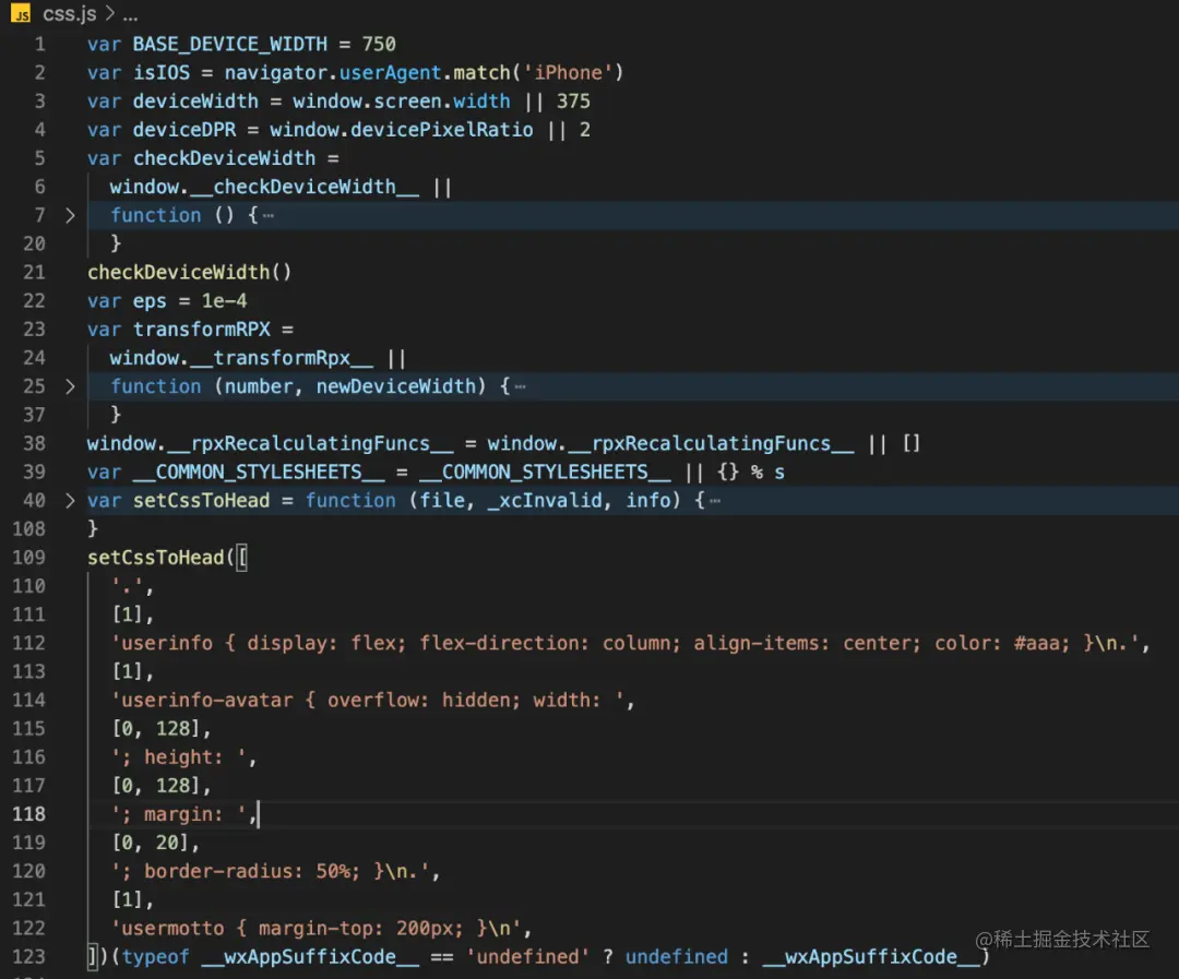 这里面会生成 setCssToHead 方法,用于将相应的 css 转换后(如 rpx 转 px 等等),通过 style 标签插入到文档的 head 里面。