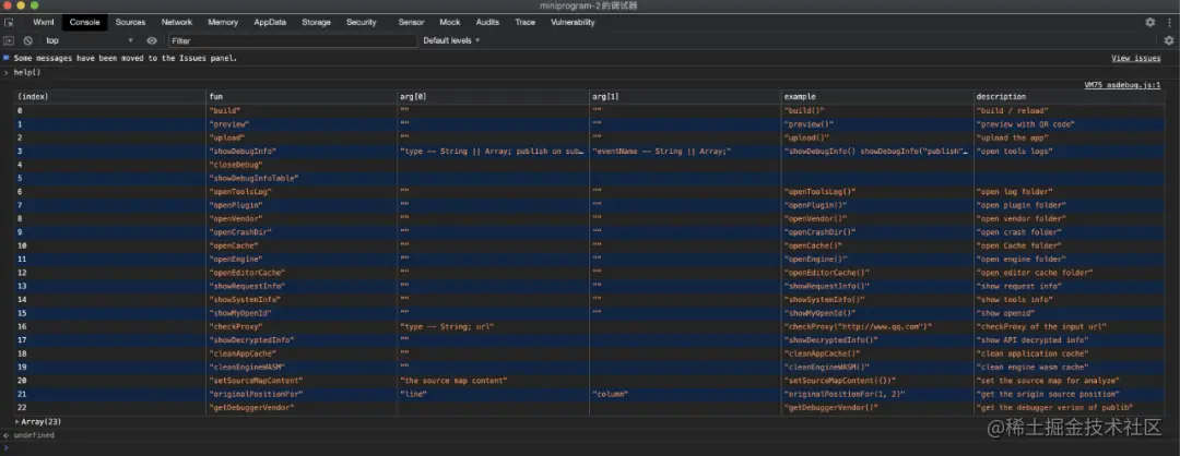 我们可以通过开发者工具,在 Devtools 里输入 help 可以得到很多指令: