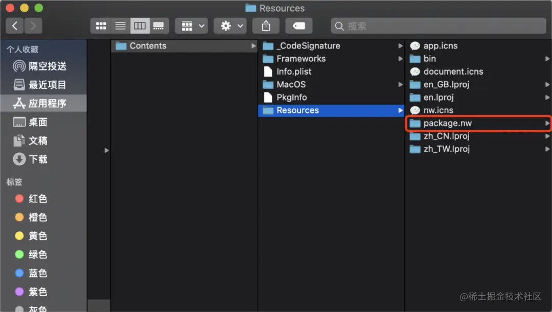 打开微信开发者工具的源代码,他是基于 NW.js 运行的,所以下图中的 package.nw 就是我们要重点钻研的对象: