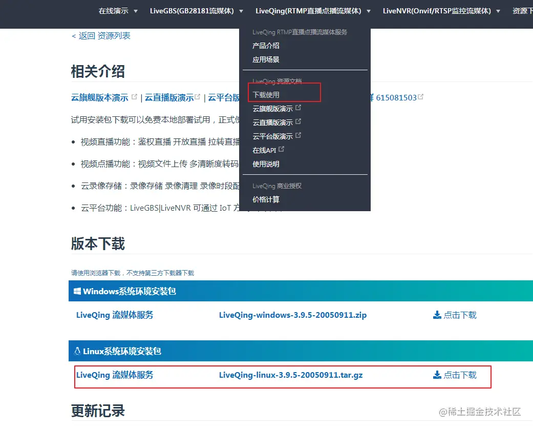 - 找到该官网,选择rtmp直播点播流媒体,下载试用把对应系统解压到自己服务器。