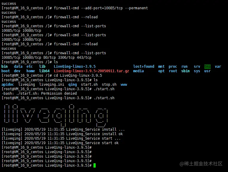 - 端口放行,然后在运行start.sh出现下面图标表示成功。
