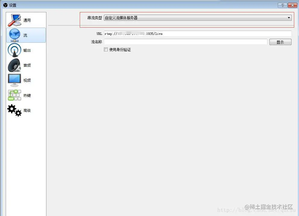rtmp://你的服务器ip:端口(1935)/live #URL填写流的地址