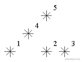 例如,上图中星星 5 是 3 级的(1,2,4 在它左下),星星 2,4 是 1 级的。