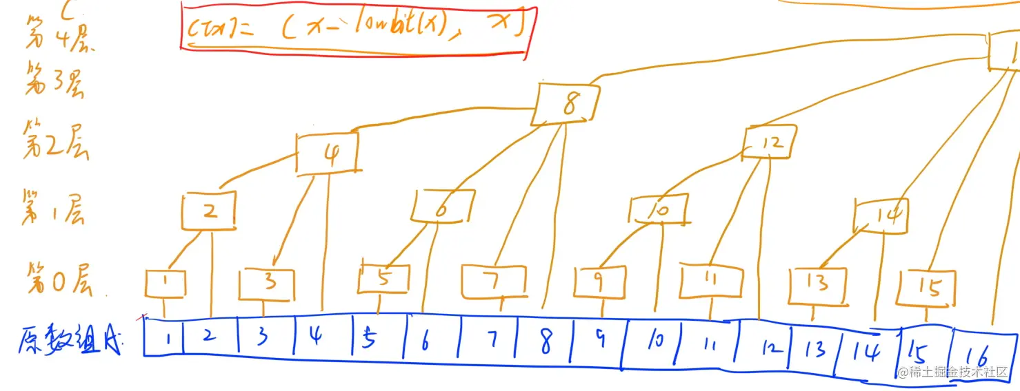 核心:C[x] = (x - lowbit(x), x]