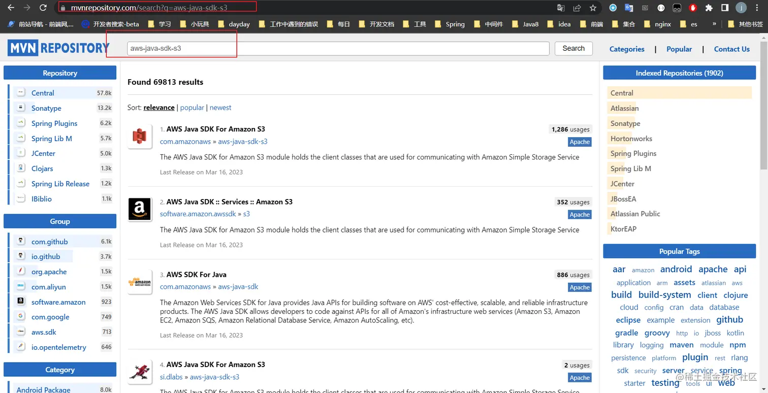 打开maven仓库,搜索minio