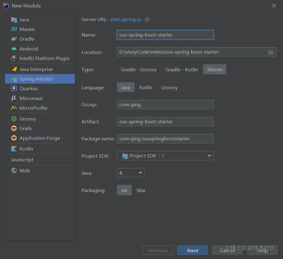 我们取名为oss-spring-boot-starter。