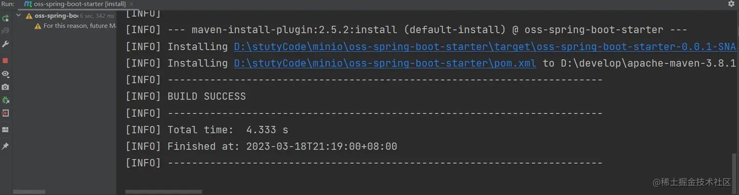在我们的oss-string-boot-starter的pom文件下加入下面插件,重新install一下就好了。