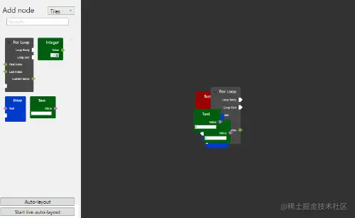 在NodeNetwork中,布局非常灵活和自由。我们可以通过代码或图形界面进行布局。例如,我们可以通过以下代码将节点放置在指定的位置: