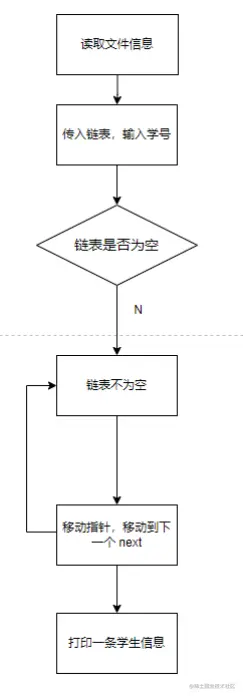 传入链表,输入学生学号,判断链表是否存在,存在就找到节点学号数据与输入学号相同的节点,打印出学生信息。